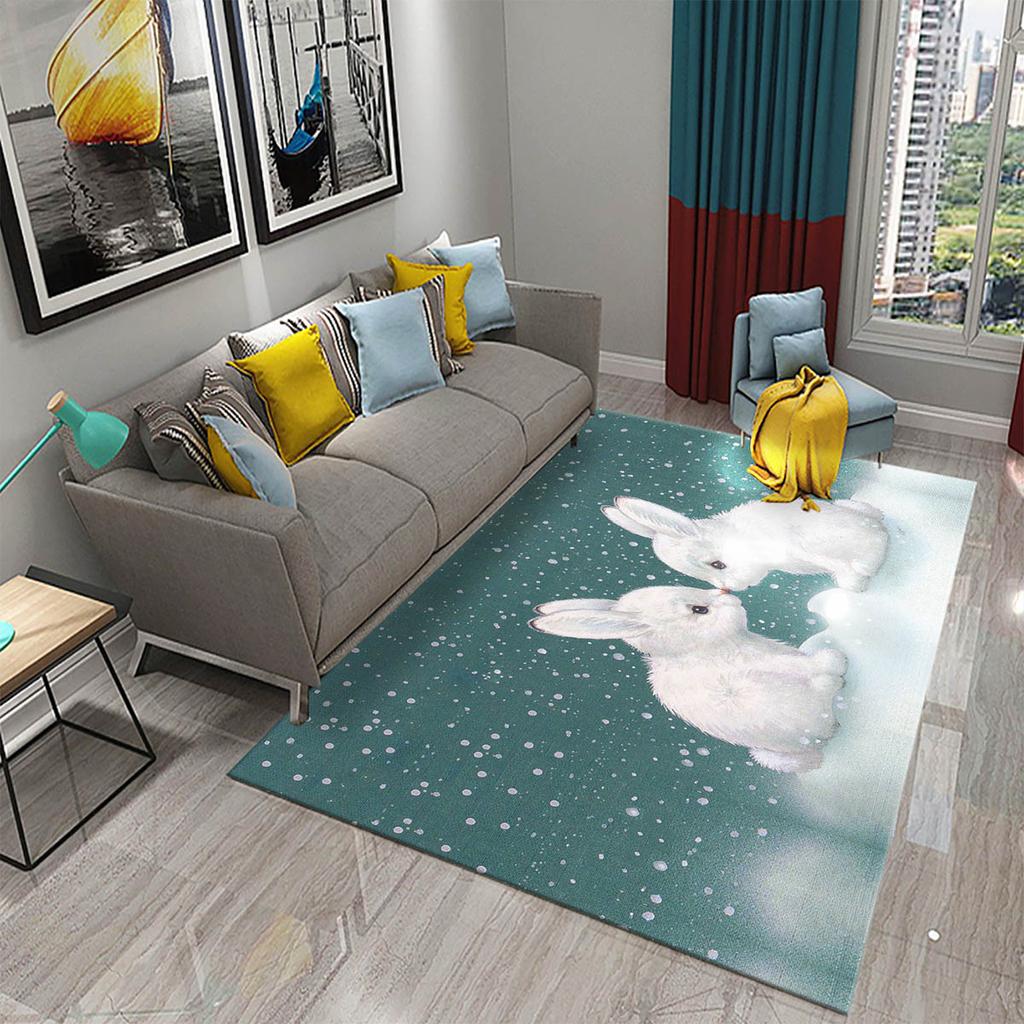 Cartoon Kaninchen Gedruckter Teppich Wohnzimmerteppiche Kinder Schlafzimmerteppich Kinderzimmer Matte Niedliches Tier Wohndekor Rutschfeste Fußmatte Teppich