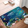 Grand Ocean Scene Door Mat with Whales Dolphins and Tropical Fish Non-slip Floor Rug for Entrance Home Decorative Mat