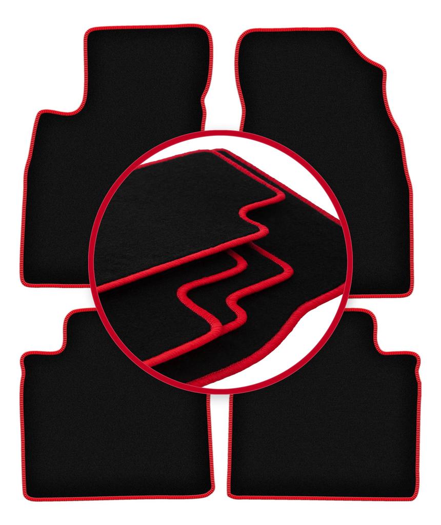 Velours-Fußmatten mit rotem Rand für: Kia Opirus Limousine (2002-2011)