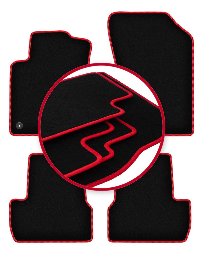 Velours-Fußmatten mit rotem Rand für: Citroen DS3 Schrägheck (2009-2016)