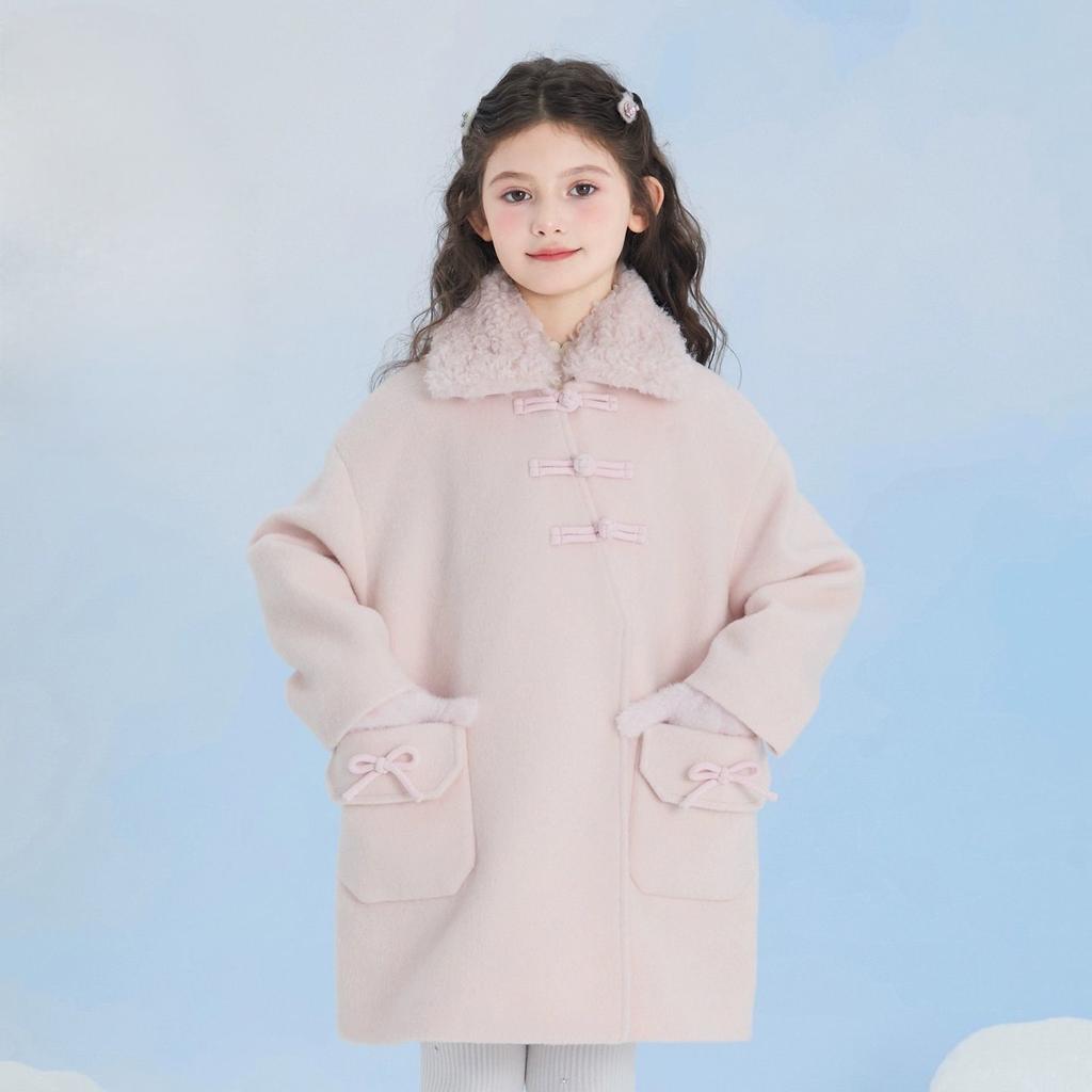Modischer Rosa Wollmantel für Mädchen, Süßer Baumwollwattierter Woll-Übermantel für Kinder Herbst und Winter