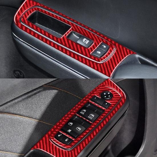 Red Carbon Fiber Front Door Windlow Button Sticker For Dodge Charger 2015-