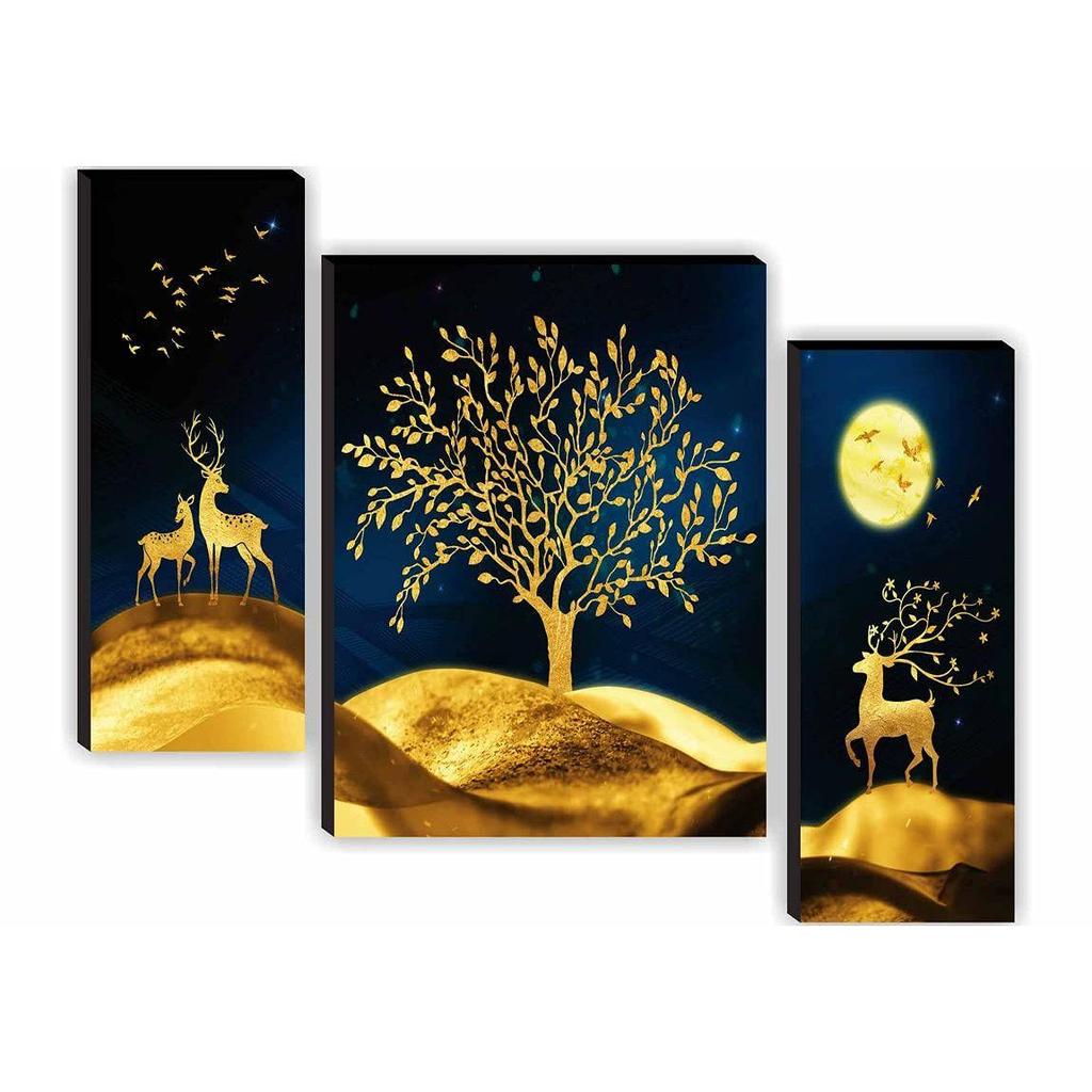 paintings Set of 3 Deer with Tree Modern Art UV Textured Home Decorative Gift Item Self Adeshive Painting 18 Inch X 12 Inch