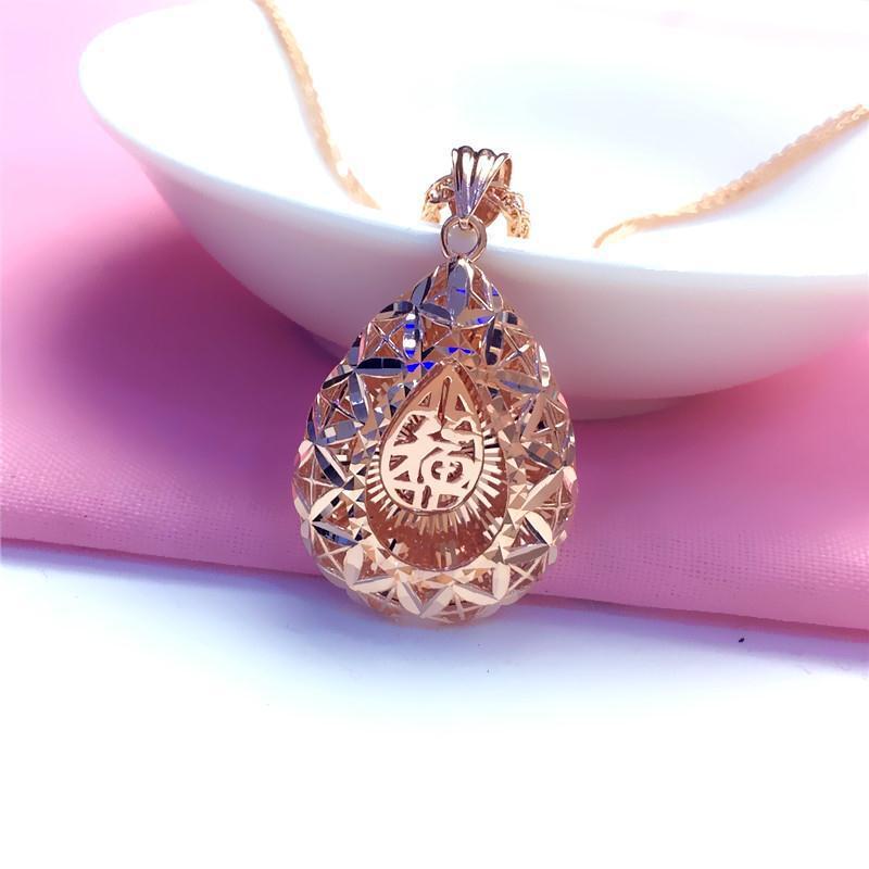 Purple Gold Three-Dimensional Water Drop Pendant, Simple Rose Gold-Plated Temperament Fashion Necklace