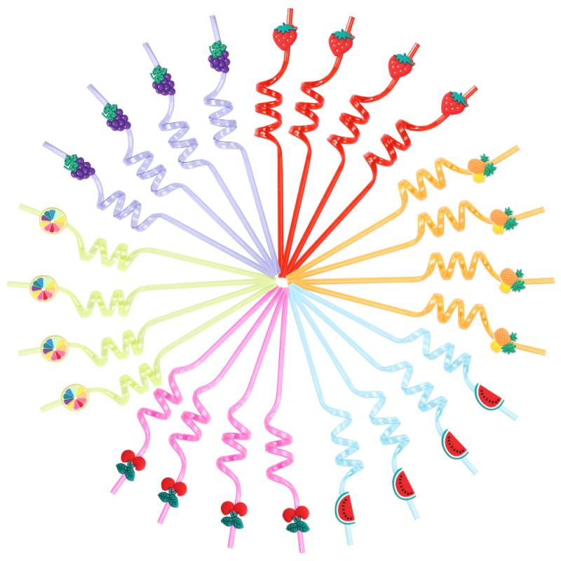 24pcs Fruit Drinking Straws Multi-purpose Reusable Soft Flexible Easy To Clean Kids Party Supplies