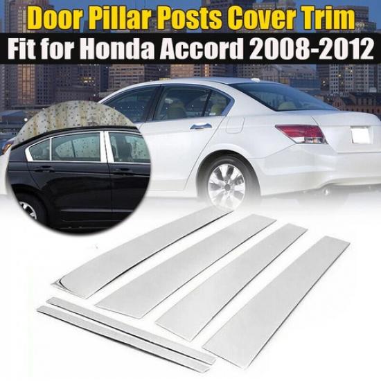 6X For 2008 09-2012 Honda Accord Sedan Door Pillar Post Window Door Trim Cover