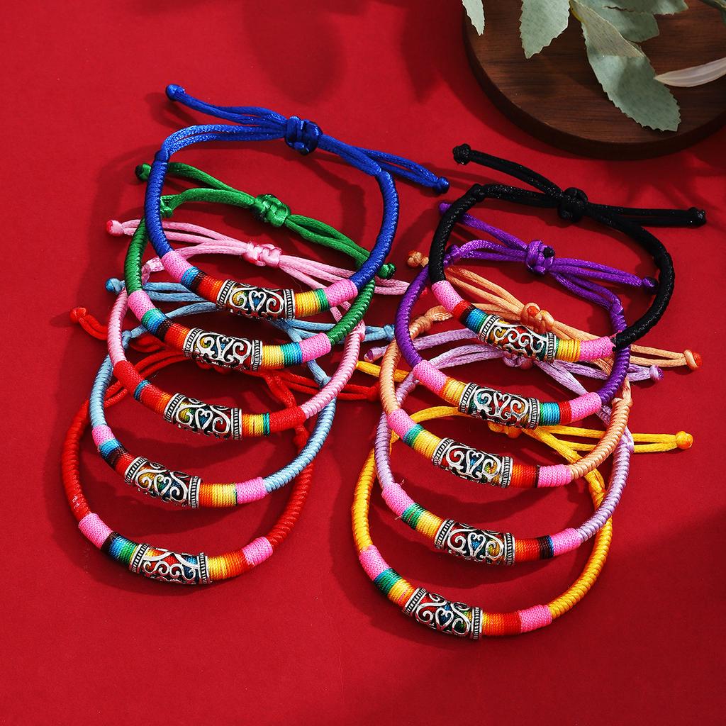 Ethnischer Stil Tibetische Passepartout-Textur Gewebtes Mehrfarbiges Seil, Retro Imitation Miao Silber Leichter Luxus Einziehbar Mode Handseil