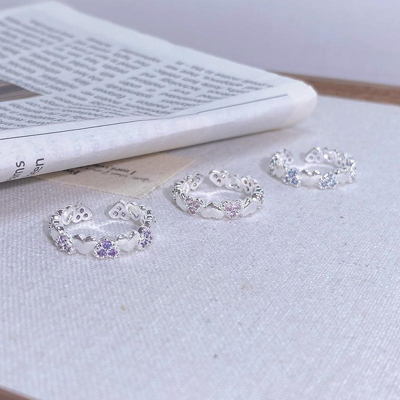 Nischendesign Farbiger Zirkon Liebe Gebürsteter Offener Ring Klein Frisch Hochwertig Zeigefingerring Leichter Luxusring Damen