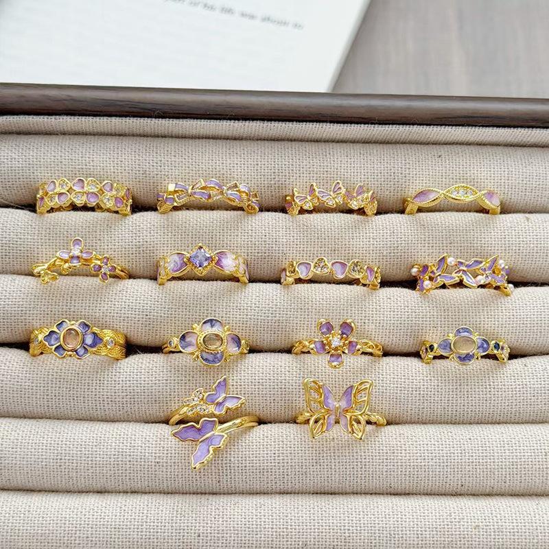Purple Brilliant Enamel Medieval Vintage Open Ring Retro Personality Niche High Sense Stacked Index Finger Ring