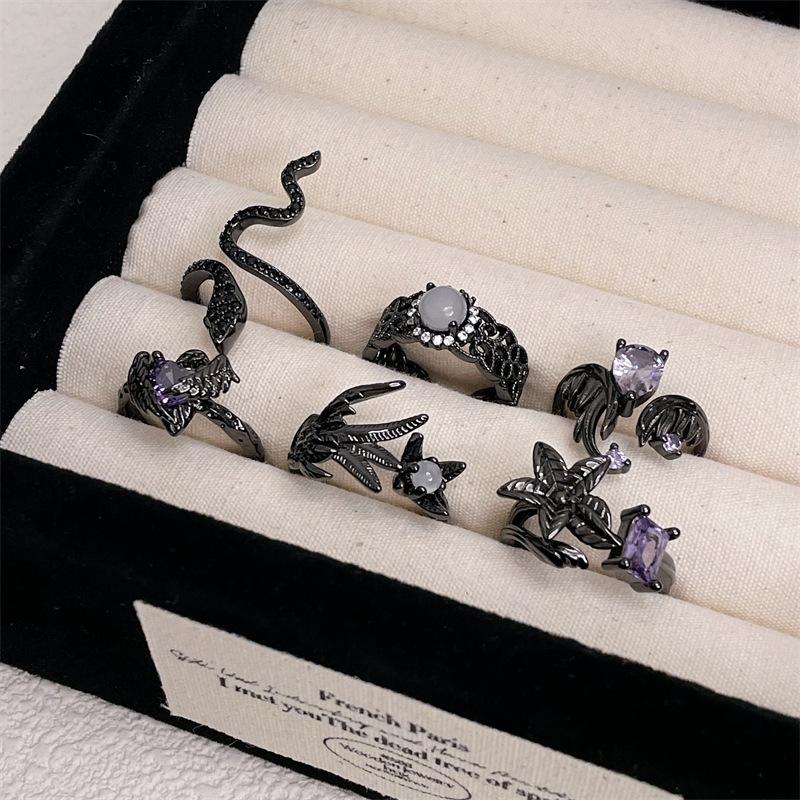 Dark Vintage Raven Purple Zircon Punk High Sense Open Ring Snake Ring Niche Design Index Finger Ring