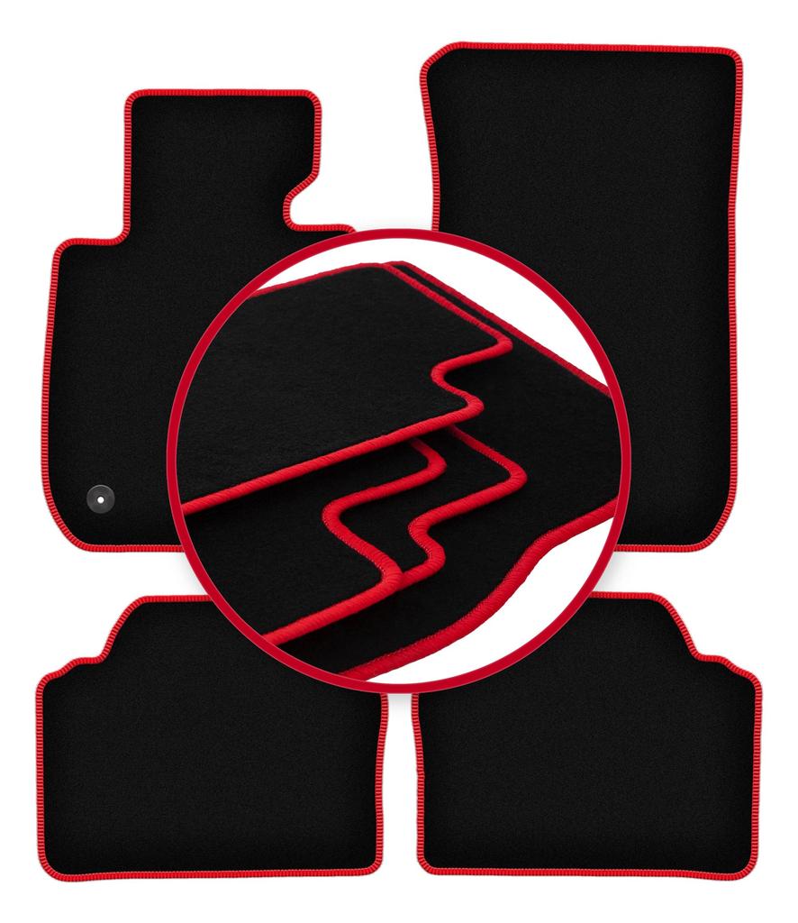 Velours-Fußmatten mit rotem Rand für: BMW 3 E90 Limousine (2004-2011)