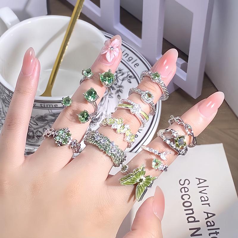 Klein Frisch Sommer Kühle Gefühl Grün Zir*****Stift Ringlicht Luxus Hoher Sinn Temperament Stapeln Tragen Nischenring Frau