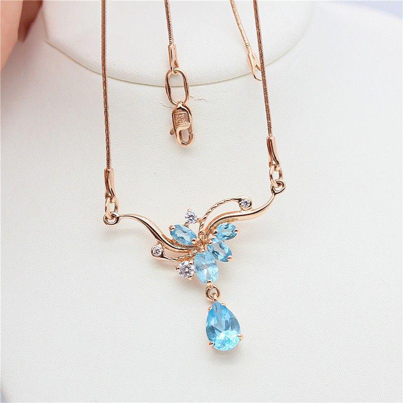Purple Gold Blue Topaz Necklace Fashionable Rose Gold Plated Water Drop Flower Collarbone Chain