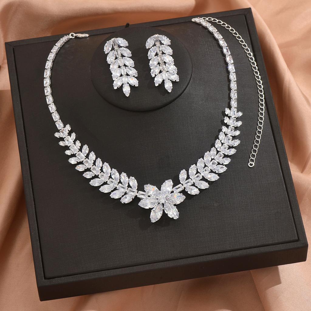 Exaggerated Zircon Wheat Ears Flower Water Drop Earrings Necklace Light Luxury High-End Collarbone Chain Fashion Jewelry Set