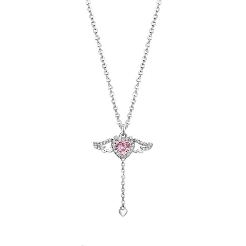 Cupid Herz Halskette Damen Rosa Diamant Zirkon Romantische Liebe Schlüsselbeinkette Qixi Festival Geschenk für Freundin