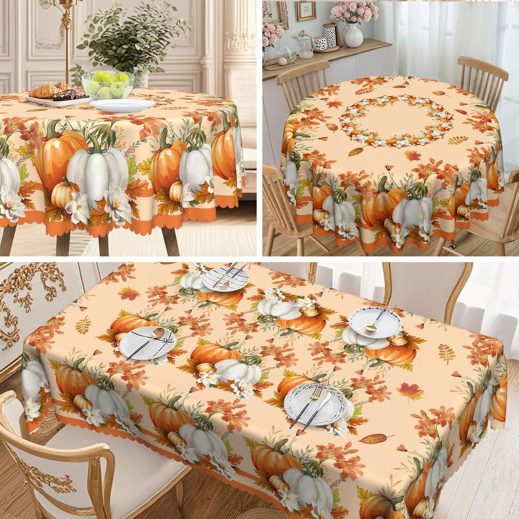 Waterproof And Anti-Dirty Wash Polyester Tablecloth Autumn Pumpkin, Thanksgiving Tablecloth Printed Coffee Table Tablecloth