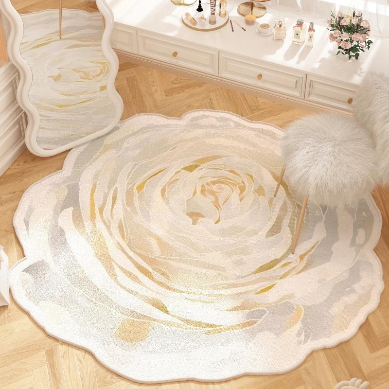 Flower Shape Cloakroom Floor Mat Large Area Luxury Rugs for Bedroom Thick Dresser Rug Nordic Living Room Decoration Plush Carpet