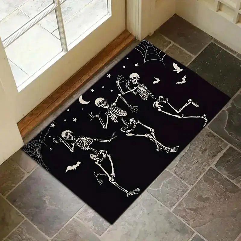 Halloween Skull Floor Mat for Entrance Door Cover of Hallway, Festival Decorative Rug for Kitchen Corridor