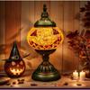 Handcrafted Turkish Mosaic Table Lamp - Halloween Pumpkin Night Light, 3-Color Dimmable Glass Bedside Lamp With Metal Base, Includes Bulb
