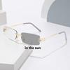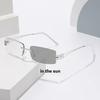 Fashion Frameless Square Color Changing Myopia Glasses for Women Men Anti Blue Light Photochromic Myopia Glasses Luxury Near Sight Eyeglasses