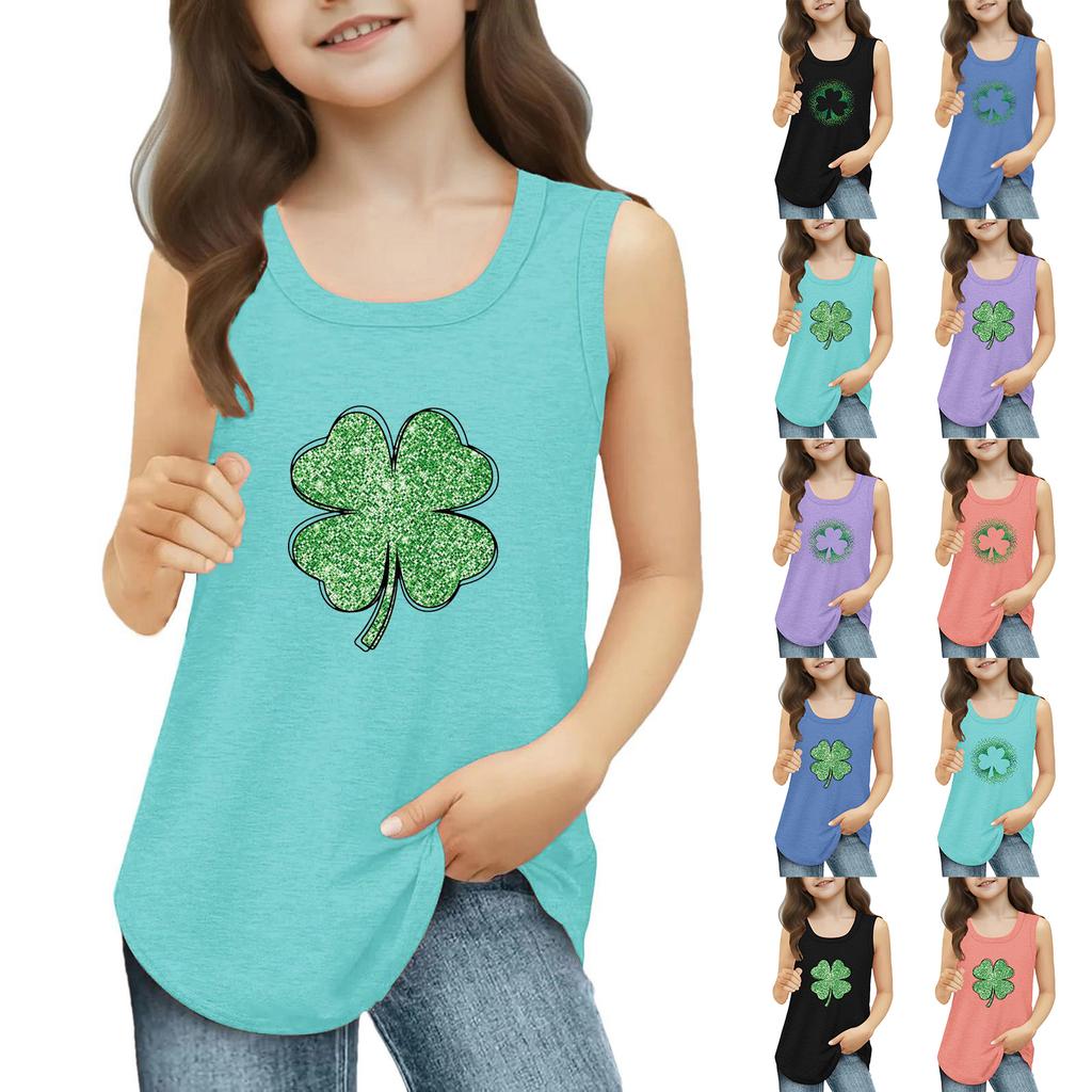 Mädchen Kinder Sommer Rundhals Ärmellose Shirts Tanktops St. Patrick's Day