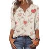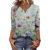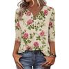 Damen Modisch Lässig Retro Floral Print V-Ausschnitt Knopfleiste Dreiviertelärmel T-Shirt Top
