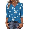 Damen Modisch Lässig Retro Floral Print V-Ausschnitt Knopfleiste Dreiviertelärmel T-Shirt Top