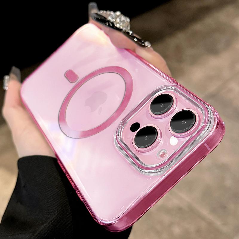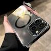 For Magsafe Phone Case For iPhone 17 16 15 14 13 Pro Max Plus 16e 17 Air Metal Buttons Transparent Clear PC Hard Cover