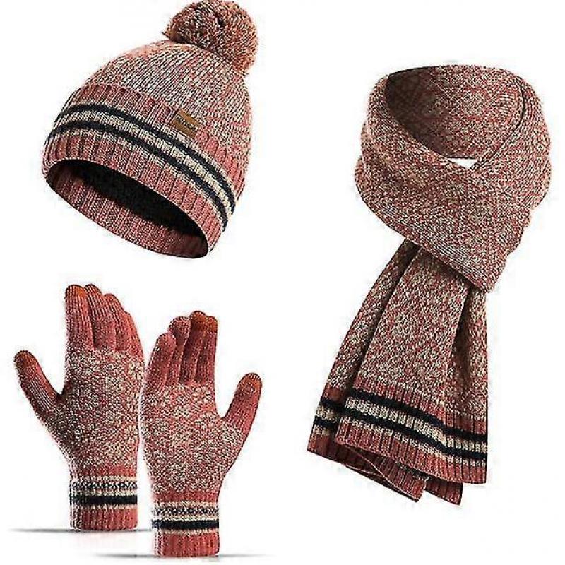 3-teiliges Winterstrickmütze, Schal und Handschuhe Set für Herren und Damen