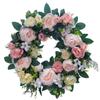 Künstlicher Pfingstrosen-Blumenkranz, grüne Blätter, Vintage-blühender Pfingstrosenkranz für die Hochzeit an der Haustür