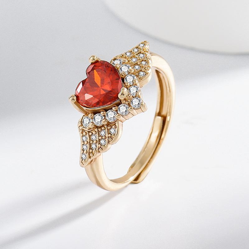 Leichter Luxus Romantisches Herz Granatapfelrot Zirkon Champagnergold Ring Modischer Und Vielseitiger Schmuck Geschenk