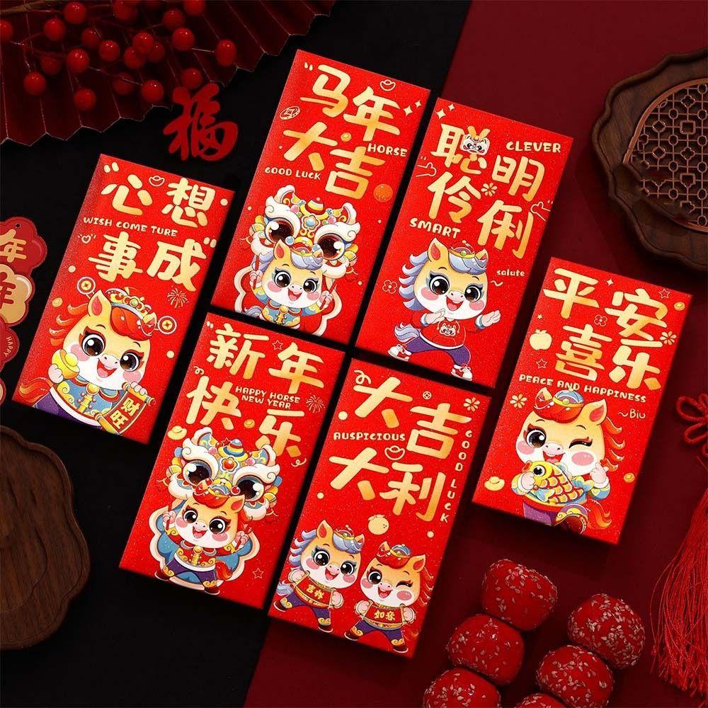6pcs Chinese Horse Year Money Envelope Cartoon Lucky Money Pockets Money Bag Lunar Year Celebration