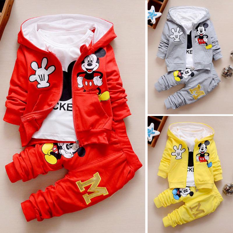 3PCS Jungen Mädchen 0-4 Jahre alt Cartoon Gedruckt Langarm Kapuzenjacke T-Shirt Offene Hosen