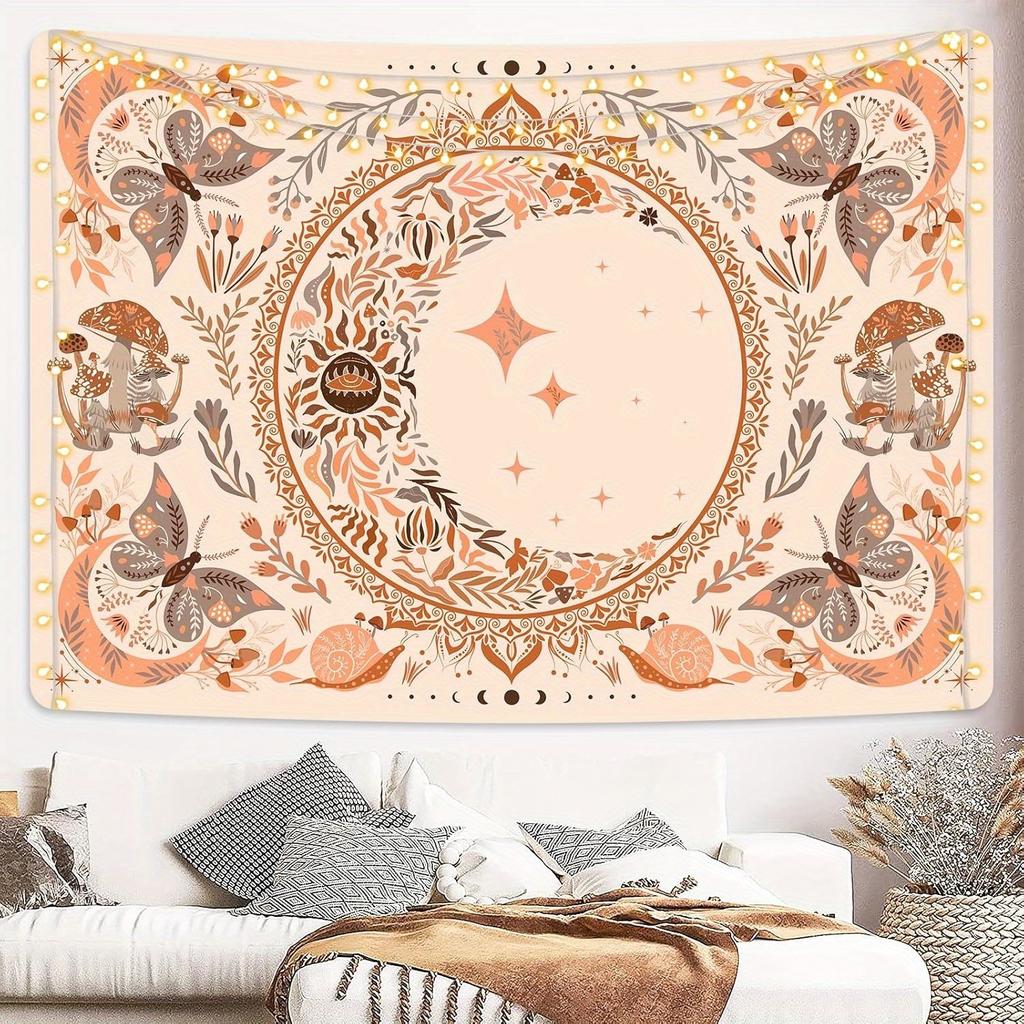 1 Bohemian Chic Vintage Tapestry with Flowers, Butterflies, Moon and Stars Pattern - Pink Mandala Wall Hanging for Bedroom