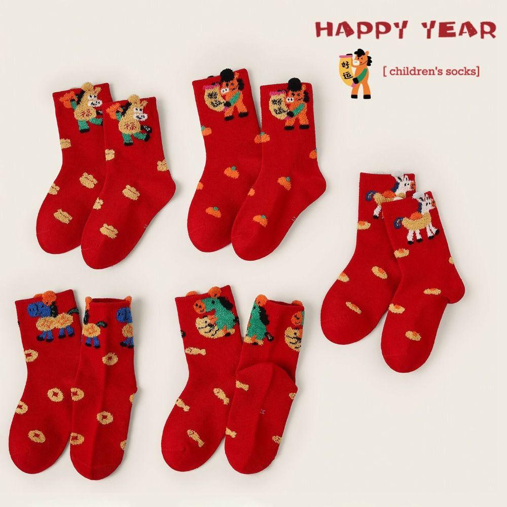 5Pairs Mid Tube Zodiac Horse Year Socks Good Luck Red Cotton Socks Chinese New Year Socks Women