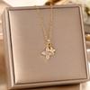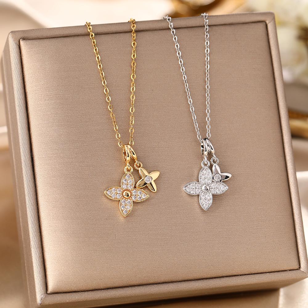 Damen Titanstahl Halskette, Mikro-pavé Diamanten, Doppel Kleeblatt-Design, Modischer High-End Schlüsselbeinketten-Schmuck
