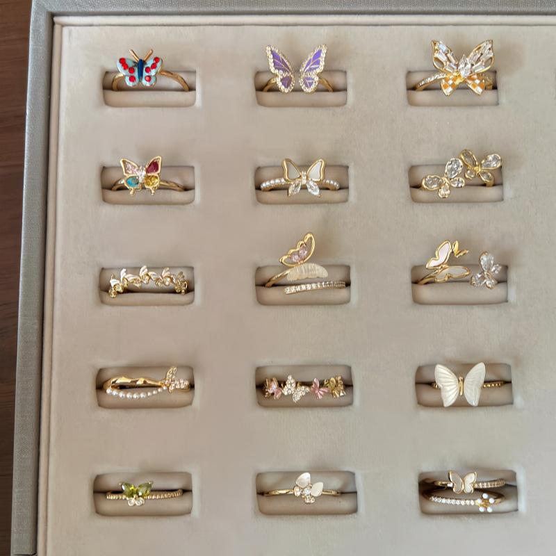 Emaille Tropfglasur Schmetterling & Perlmutt Silberring - Eleganter, Nicht-Verblassender Damenschmuck