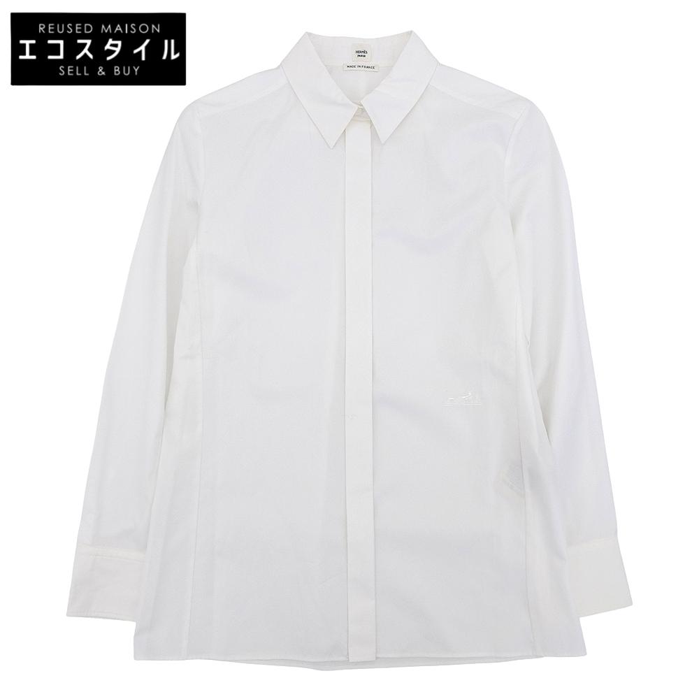 Hermes Ausgezeichneter Zustand Caleche besticktes reguläres Hemd, Damen, weiß, Größe 34, 3H0627DV, 2023AW Oberteile 34 weißGebraucht