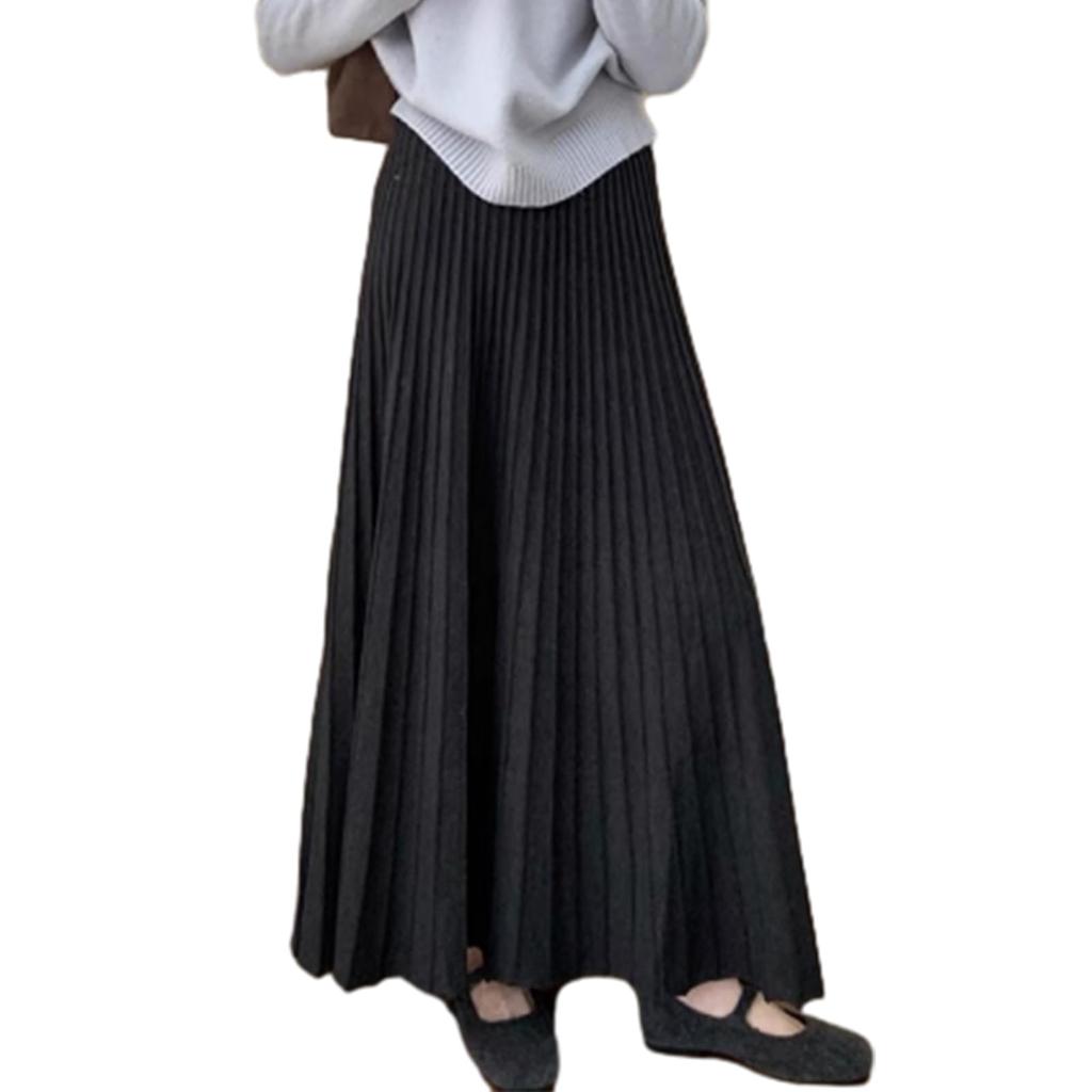 Pleated Loose Elastic Perfect for Everyday Going Winter [JLBOCMGT] Women's Skirt, Long, Solid, A-Line, Knit, Fashionable, Fit, Flattering, Waist,