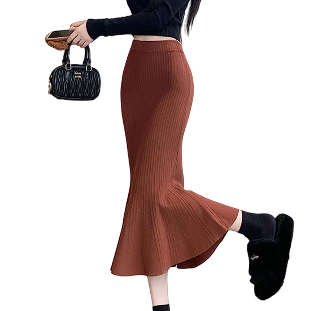 MERONOCALLALY Meerjungfrau Midi Elastisch Eng Hoch Perfekt für Frühling Rock, Strick, Länge, Herbst/Winter, Lang, Taille, Rock, Stretch, Taille, Elegant,