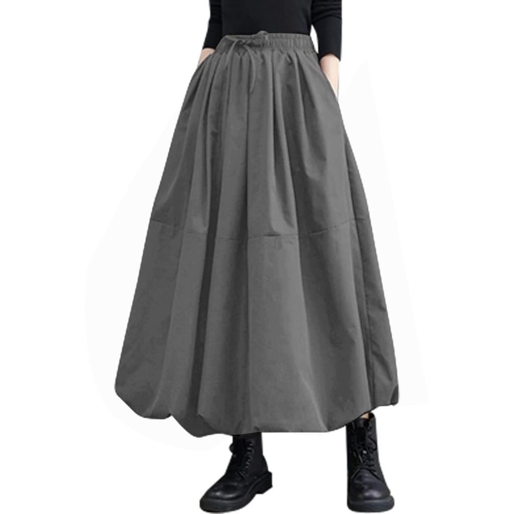 Guooryvner Long Balloon Maxi Flared Solid Plus Loose Women's Skirt, Skirt, Length, Skirt, Cute, Long, Color, Elastic, Pockets, Sizes, Lined, Elegant,