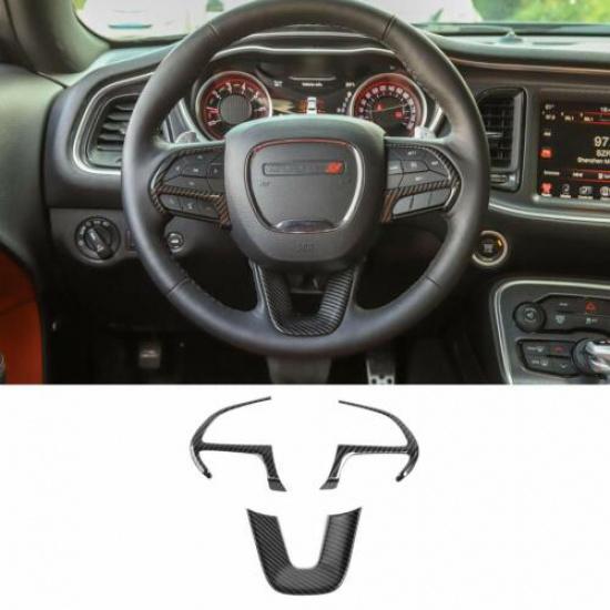 Car Steering Wheel Moulding Decor Cover Trim for Dodge Charger Durango 15+Carbon