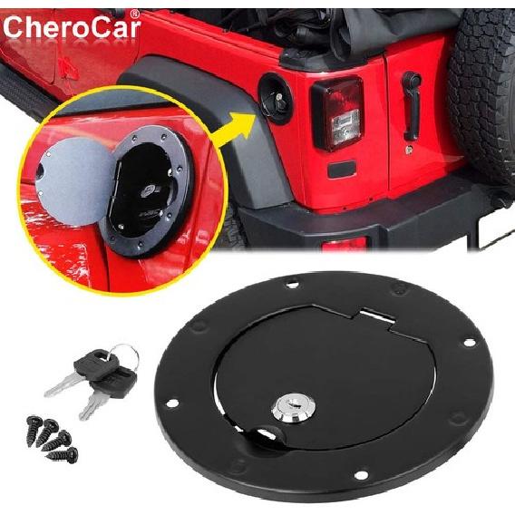 Black Locking Gas Cap Fuel Filler Door Cover Aluminum for Jeep Wrangler TJ 97-06
