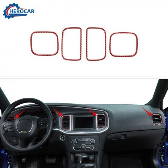 4XRed Carbon Fiber Center Control Air Vent Ring Trim Cover for Dodge Charger 11+