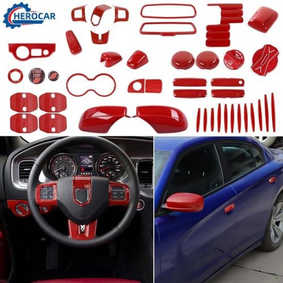 ??Red Car Decorative Trim Molding Frame Bezels Cover Kit For Dodge Charger 2010+