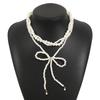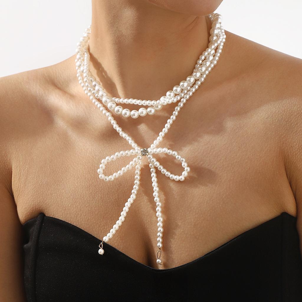 N12285 popular pearl bow necklace women, light luxury elegant layered (faux) pearl
