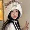 2025 new retro jacquard cat ears knitted hat women's winter velvet cold-proof ear protection cute warm wool hat