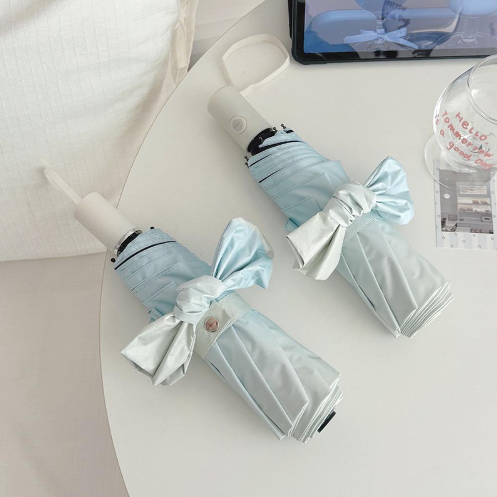 Compact Bow-knot 3-Folding Sun Umbrella Black Coated Protection Salt-Type Gradient UV Protection Sun Umbrella UPF 50+ Windproof