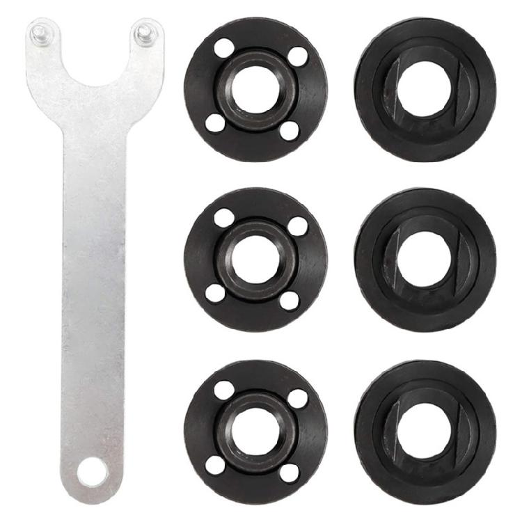Flange Nut and Wrench Set For Angled Grinders 7PCS Alloy Steel Lock Nuts Professional Lubricated Finish Secure Grip