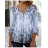 New Summer Fashion Floral Print V-Neck Three-Quarter Sleeve T-Shirt